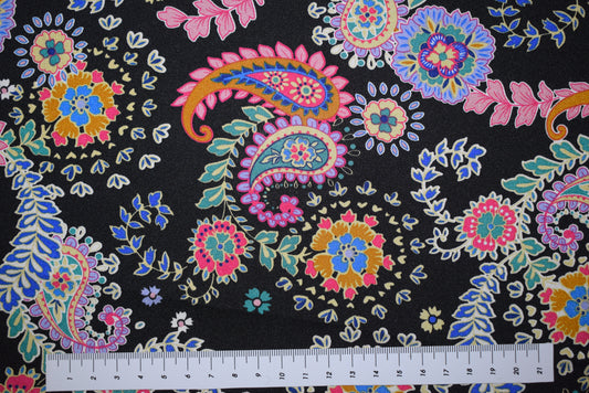 Black Paisley Satin Crépe