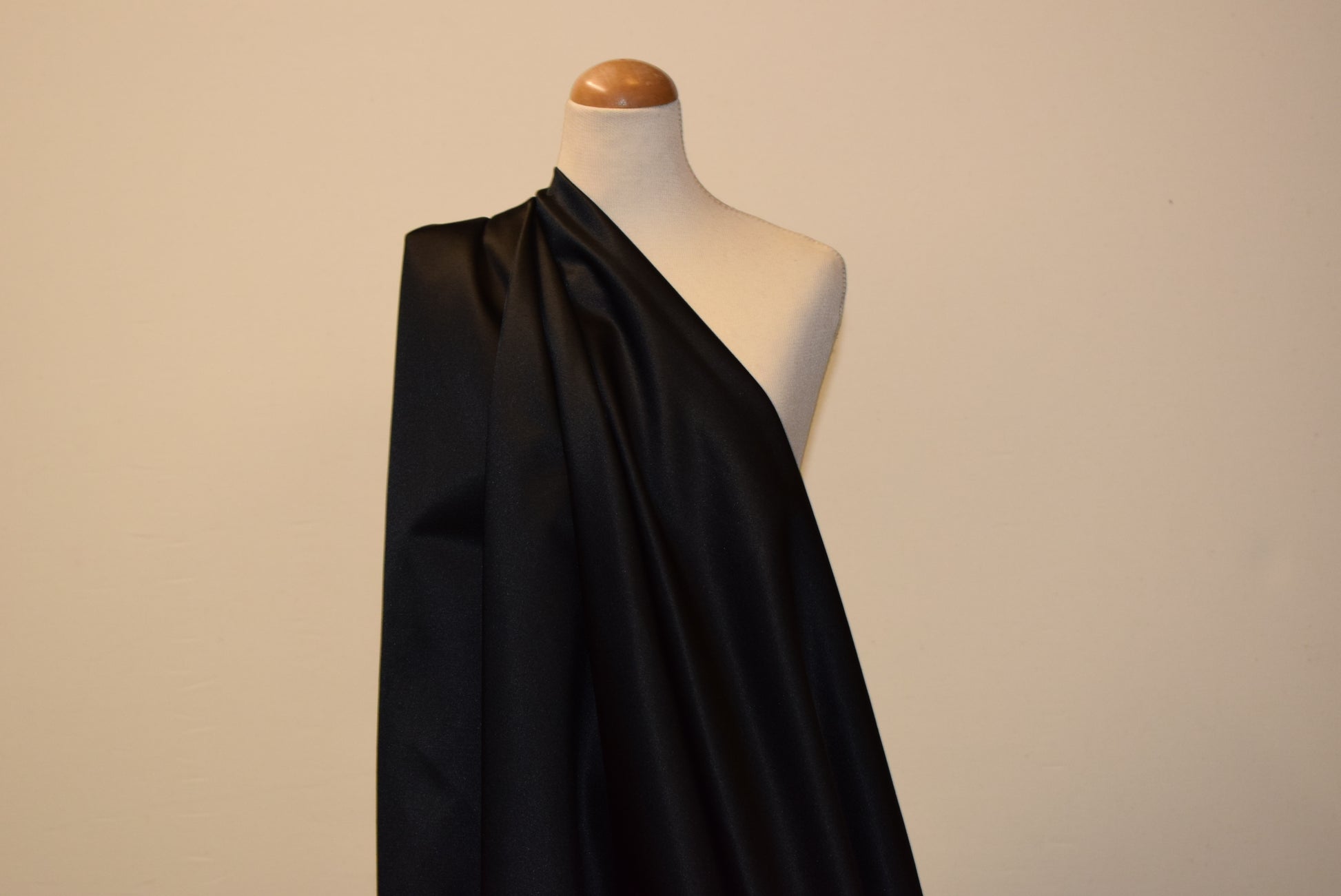 Black Stretch Cotton Mix Satin