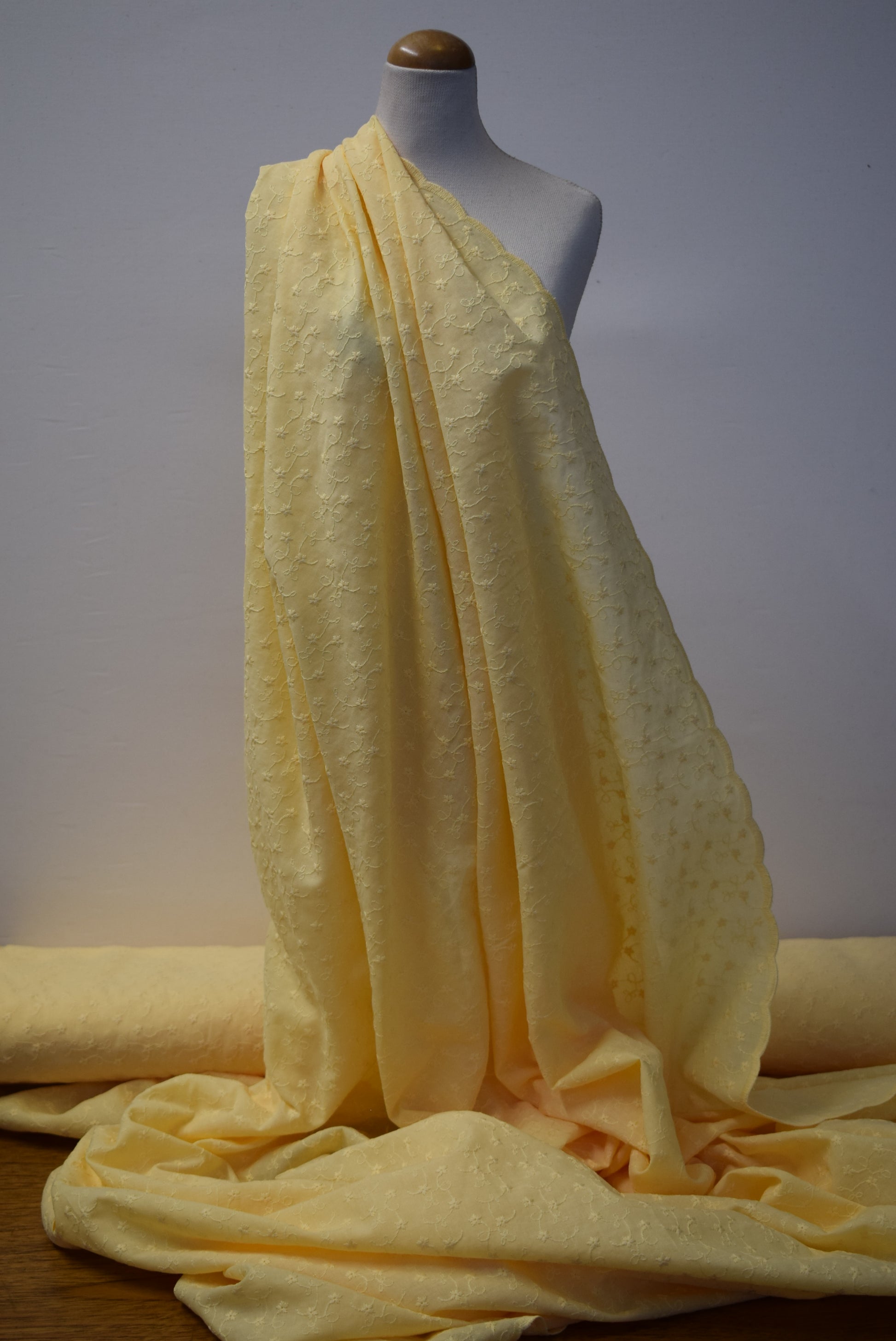 Delicate double flounce embroidered lawn featuring intricate needlework detail across three carefully curated colourways. Lightweight cotton lawn construction offers breathability and drape ideal for summer garments, blouses, and occasion wear. Each colourway showcases the embroidery distinctly, allowing designers and makers to select the palette that best suits their project vision.